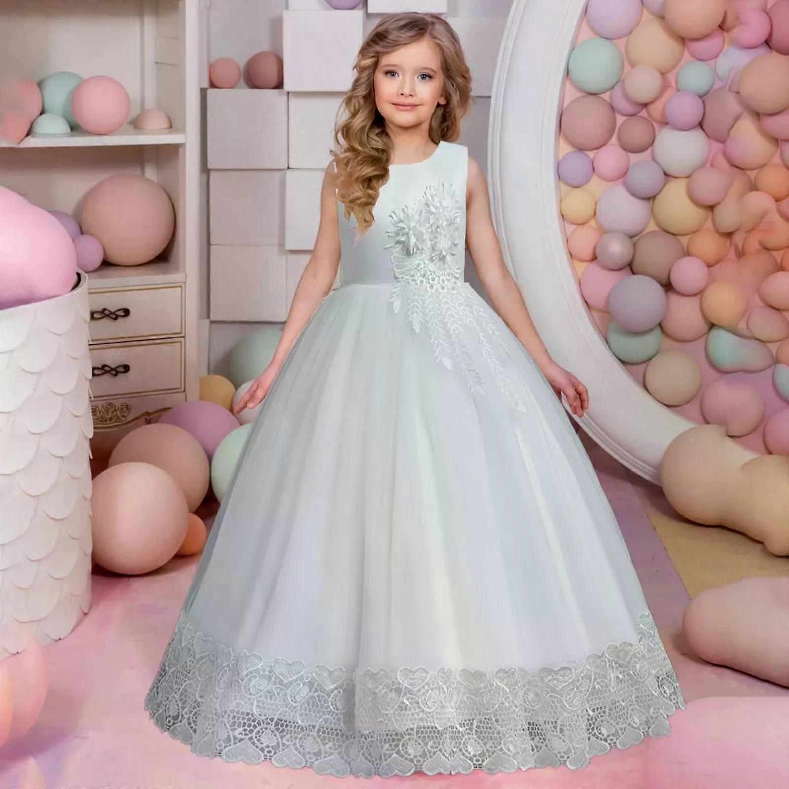 Vintage Flower Girls Dress Wedding Party Princess Pageant Long Gown Formal Dress