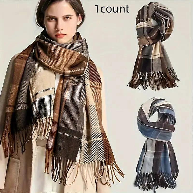 New Meleard Scarf for Women & Men, Autumn Winter Korean Style Plaid Shawl, Unisex Warm Neckwear, Perfect Holiday Gift