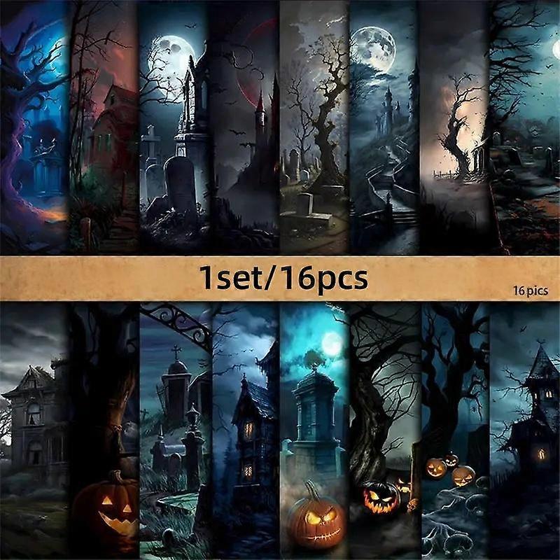 Halloween Theme Paper Pad Set, 16 Sheets 135gsm, Ghost House, Cemetery, Full Moon, Haunted Forest Designs, DIY Crafts, Decorations