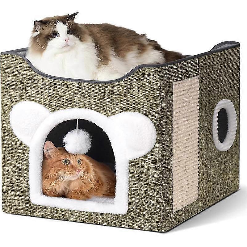 Cat Houses for Indoor Cats, Large Cat Cave with Fluffy Ball and Scratch Pad, Covered Cat Bed House, Foldable Cat Hideaway cozy comfort warmi