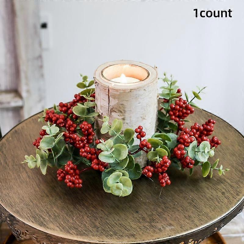 New Christmas Candle Wreath Decoration, Berry & Pine Design, Plastic Desktop Ornament, Holiday Decor, No Candles Included, Non-Electric