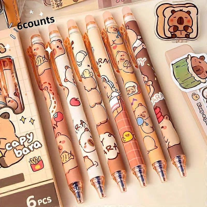 Set of 6 Water Buffalo Erasable Gel Pens, Ink Retractable Design, Smooth Writing, Quick-Dry Office Supplies, Elegant Stationery Gift