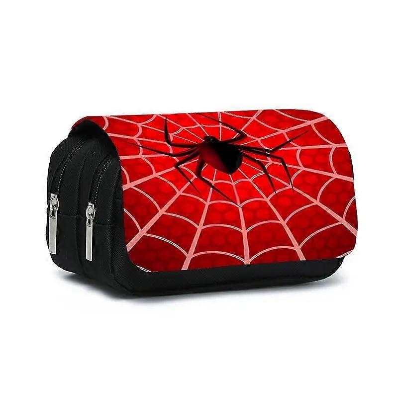 Durable Polyester Pencil Case with Spider Web Design, Dual Layer Zipper Closure, Perfect for School Supplies & Office Organization