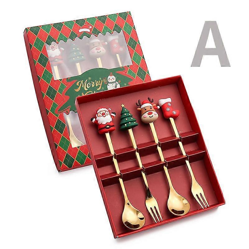 4-Piece Christmas Creative Stainless Steel Spoon Set, Coffee Stirring Spoons, Dessert Fruit Forks, Doll Utensils, Halloween & Xmas Gifts