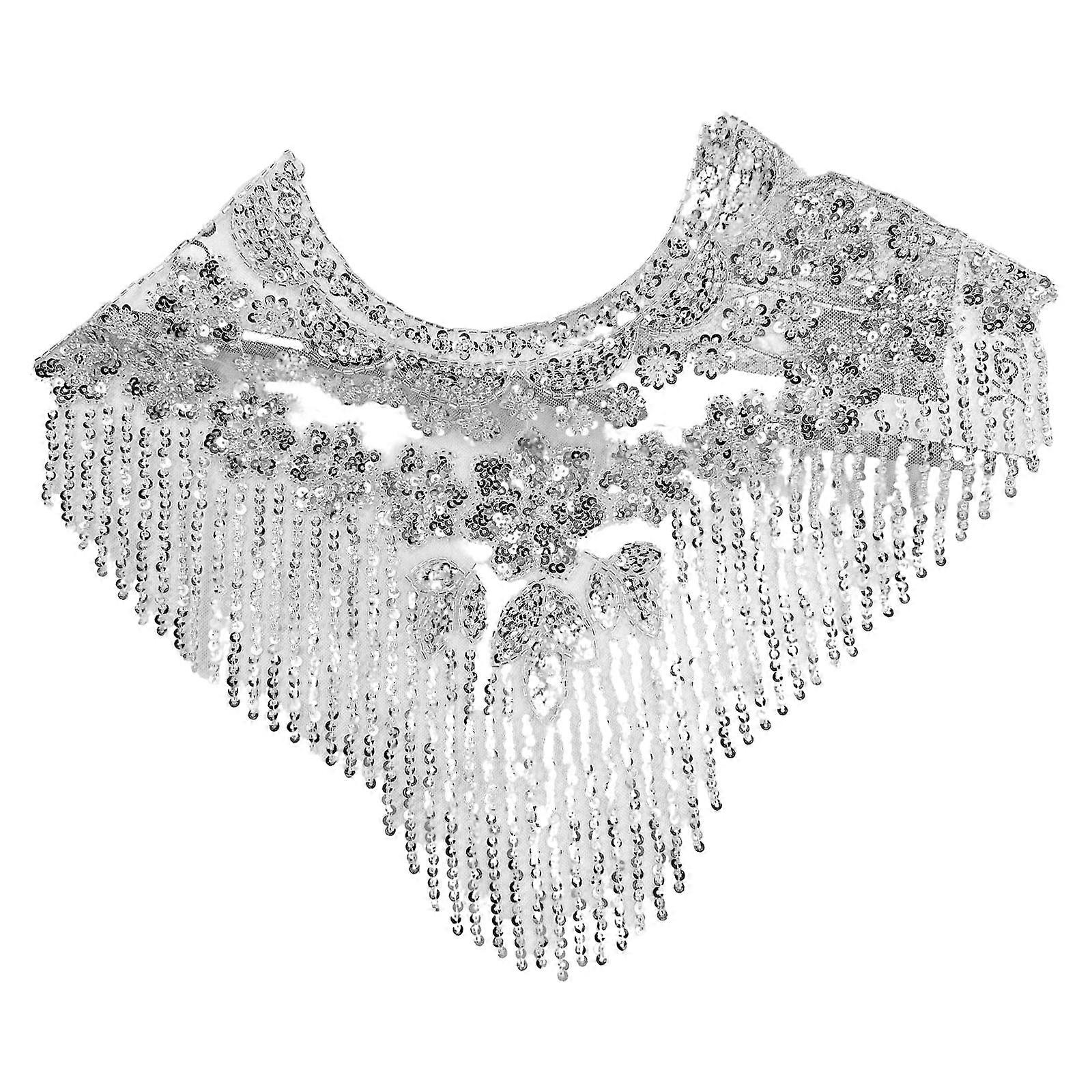 Sturdy Clothing Repair Patches Featuring Embroidery and Beads Suitable for Various Apparel Silver
