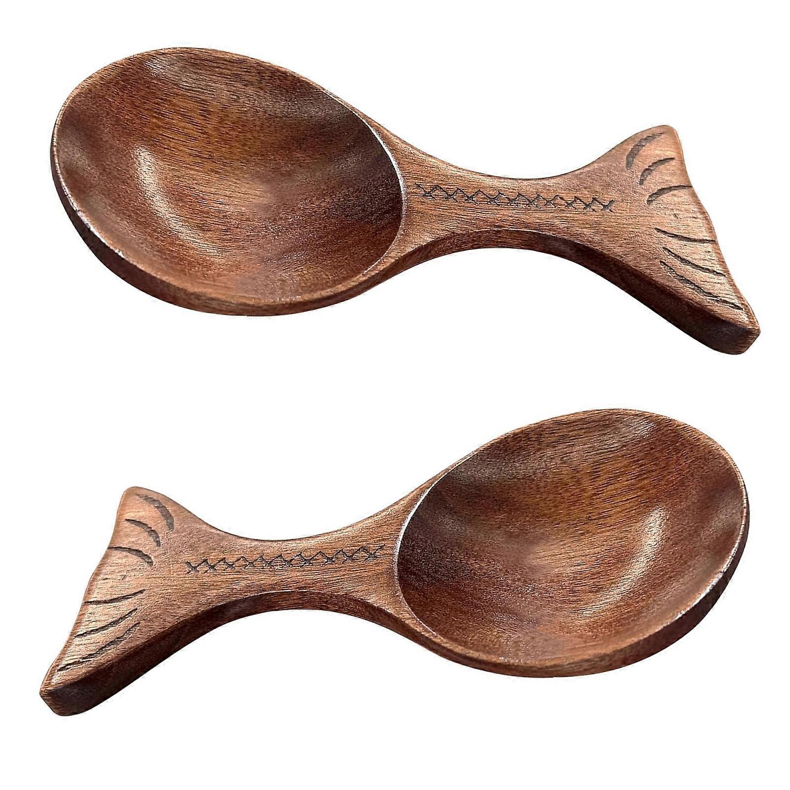 Pack of 2 Decorative Wooden Spoons Comfortable Hold Design Fish Shaped Serving Spoons Utensils for Homes Kitchen Use Multicolor