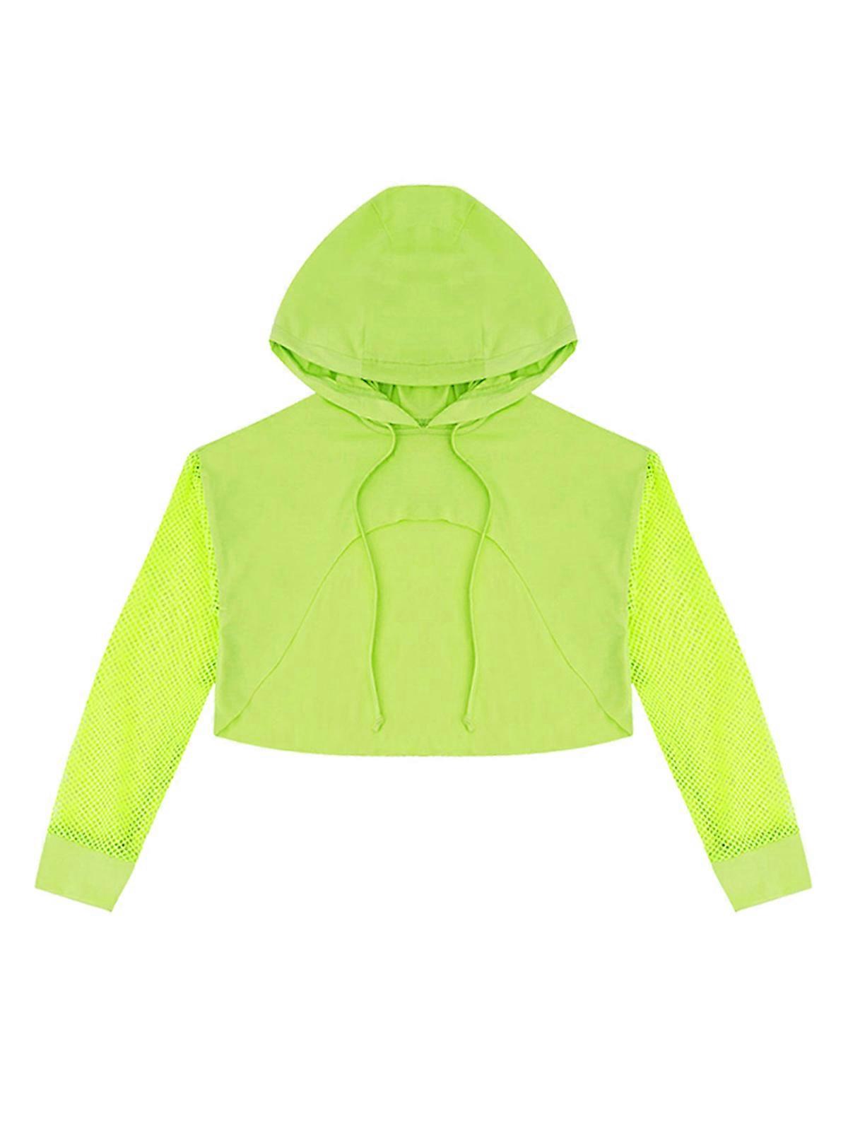 Kids Girls Fishnet Cropped Hoodie Mesh Crop Tops Pullover Hooded Sweatshirts Top