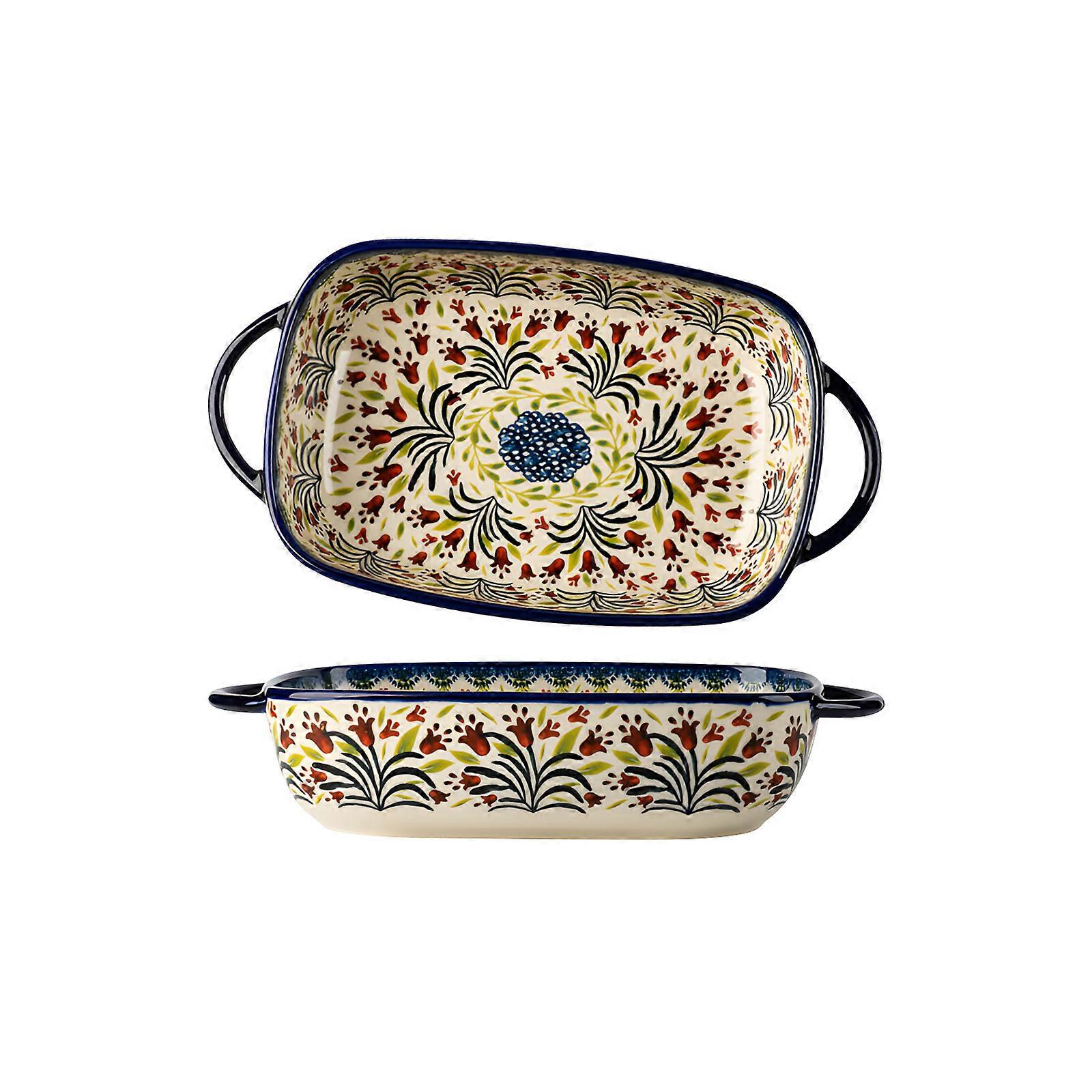 Elegant Earthenware Roasting Extent With Double Pulls Firm Hold Excellent For Party Serving And Oven Cooking Multicolor