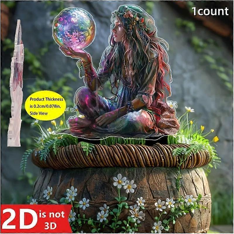 Enchanted Fairy Garden Stake with Dreamy Crystal Ball, Religious Theme Outdoor Decor, Waterproof Art Insert, Perfect for Graduation Season