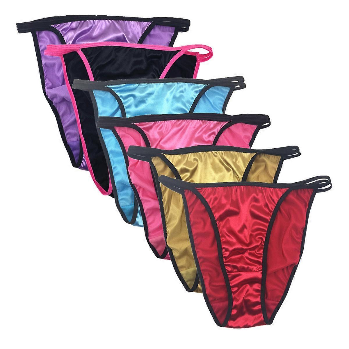 6 Pcs Lot Womens Sexy Satin String Bikini Briefs Panties Fashion Underwear,S-3XL