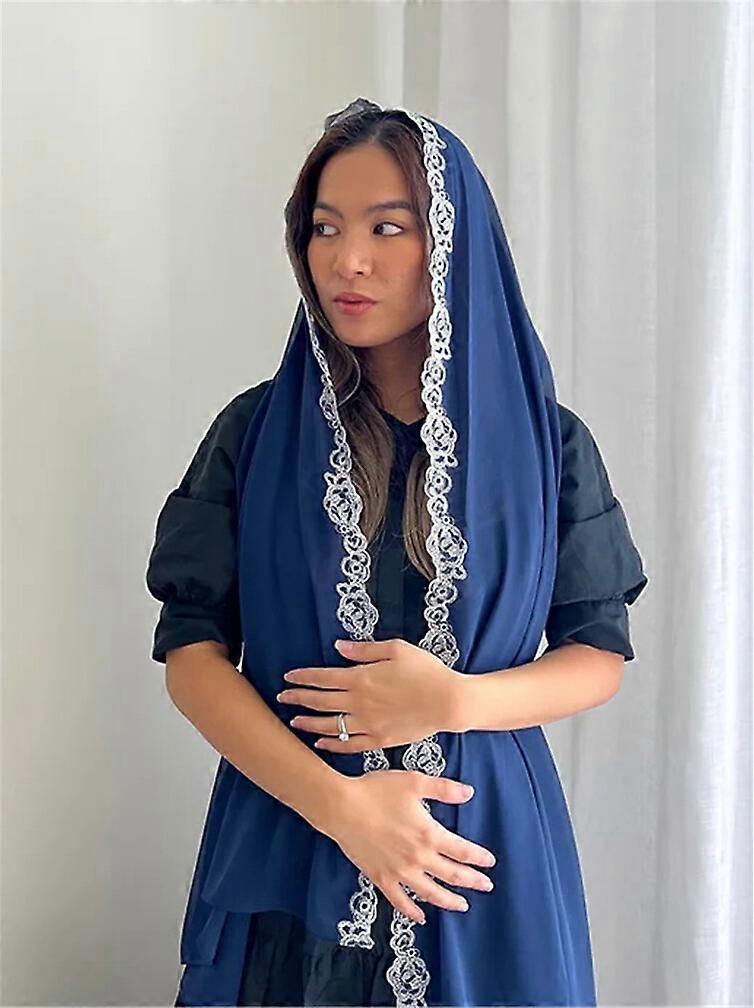 Chiffong Mantilla Veils for Mass Catholic HeadCovering Wrap Lace Edge Navy Khaki