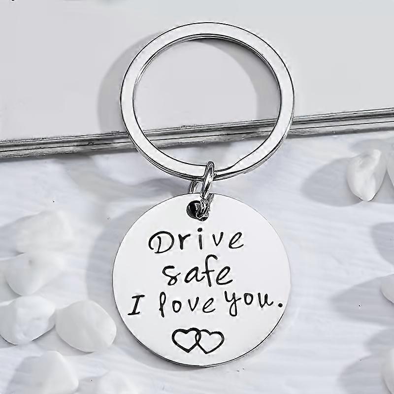 Stainless Steel Keychain Gift for Relatives Friends Girlfriend, Driving Safety I Love You Design, Durable Car Accessory