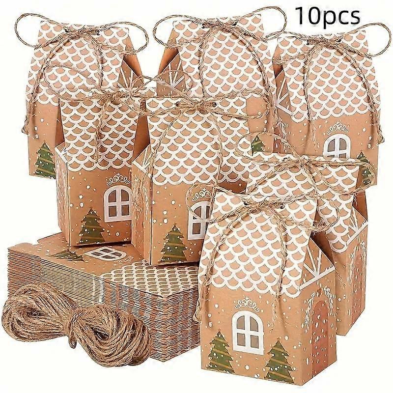 Christmas Candy Boxes Set, Small House Design Paper Gift Packaging, Perfect Holiday Party Favors & Decorations, 10-Piece Collection