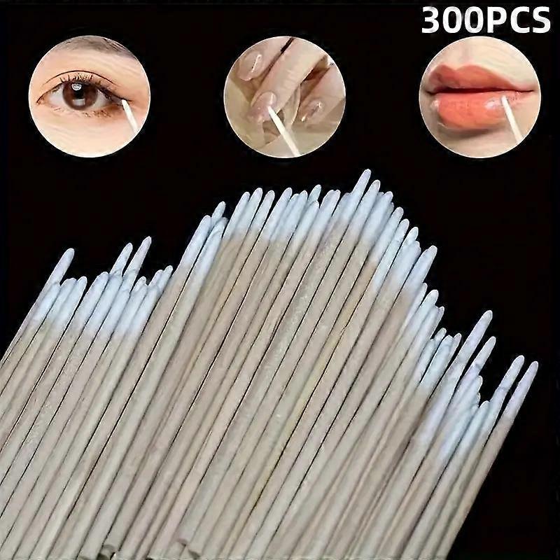 300pcs Precision Nail Polish Remover & Cleaner Tool Set, Wooden Handle Adapter for Eyebrow Tattoo Makeup, Home Manicure Salon Beauty Tools