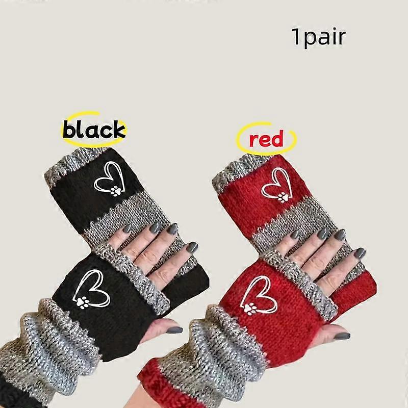 Women's Winter Touchscreen Gloves, Heart & Claw Embroidery Design, Elastic Cuff Outdoor Use