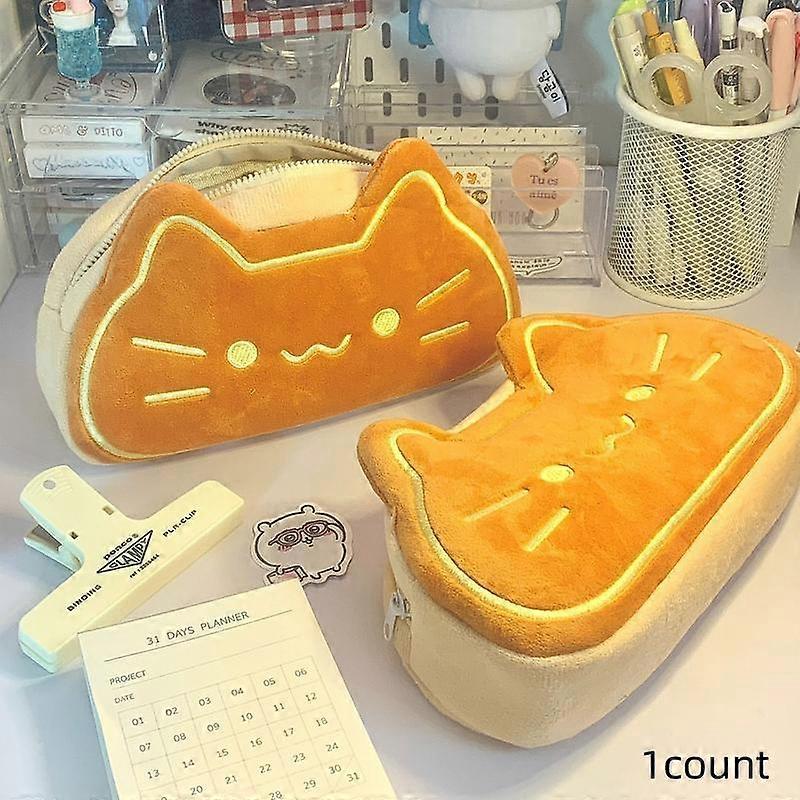 Cute Cat Pencil Case, Large Capacity Plush Pencil Box, Durable Cat Theme School Stationery Organizer, Kawaii Design, No Battery Included, Sc
