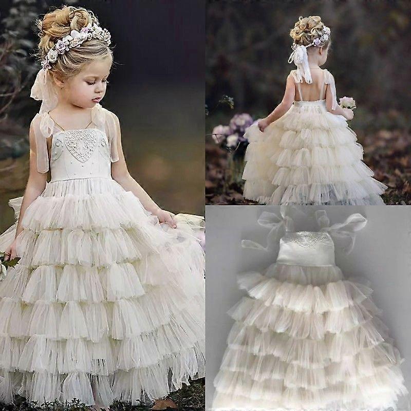 Ivory Flower Girl Dress Ruffles Tulle Long Princess Pageant Formal Gowns For Kid