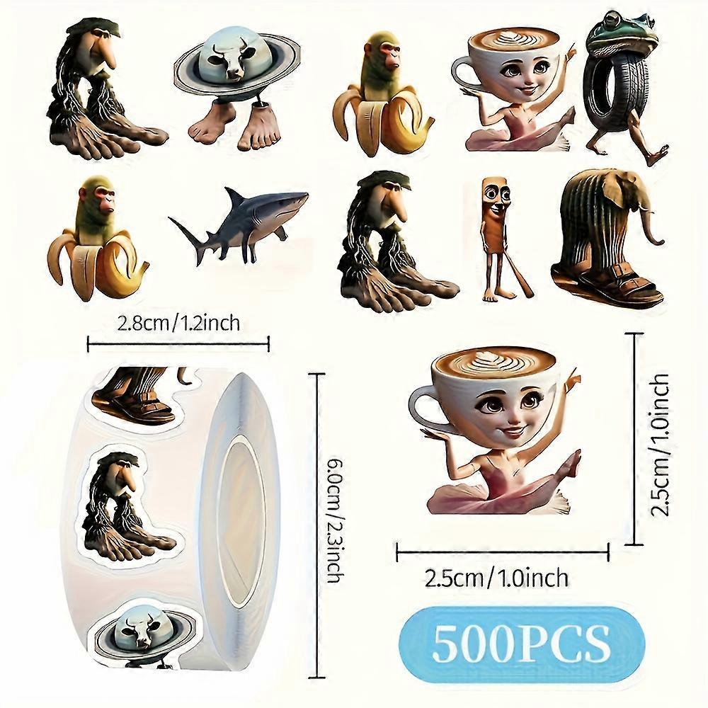 500pcs/1 Roll Italian Brain Rot Stickers, TungTungTungTungTung Sahur Decals, Funny and Abstract Meaningless Stickers