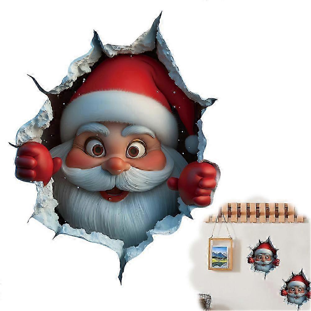 A 3D Cartoon Christmas Vinyl Wall Decal that depicts Santa Claus Breaking Through the Wall.