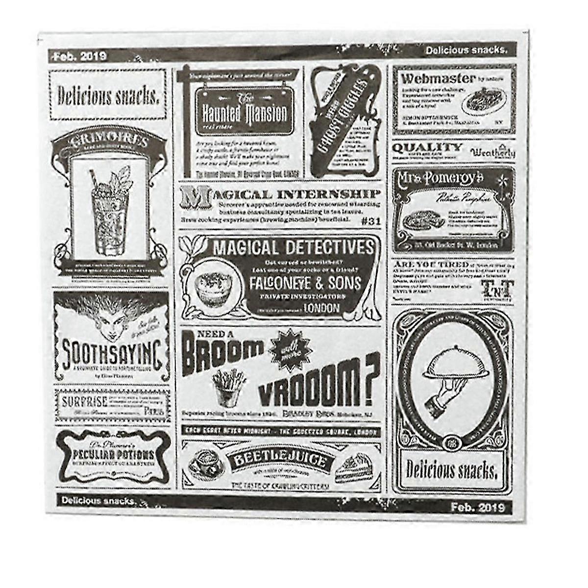 200Pcs of English Newspaper designed Greaseproof Snack Paper, Oil-Absorbent Paper for wrapping French Fries and a Sandwich.