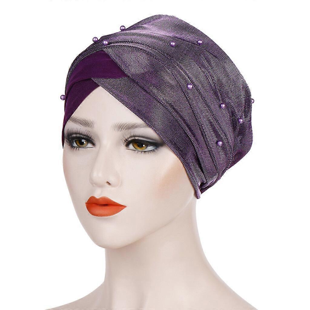 Muslim Women Beads Hijab Elastic Turban Hat Chemo Cap Arab Head Scarf Wrap Cover