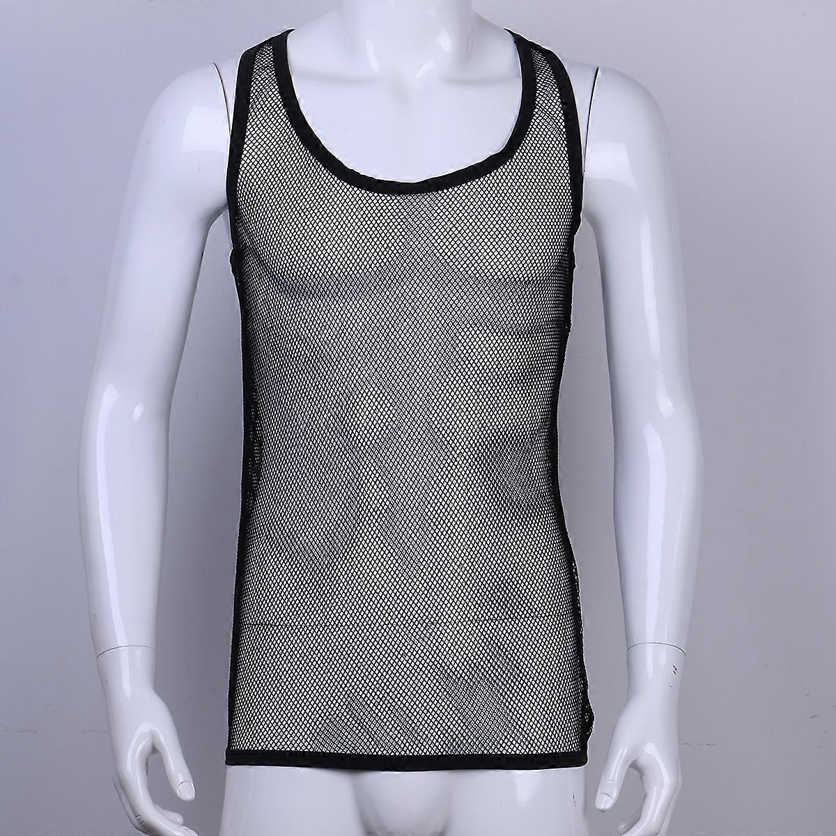 Mens Fishnet See Through Vest Underwear Slim Fit Muscle Tank Top Vest Undershirt