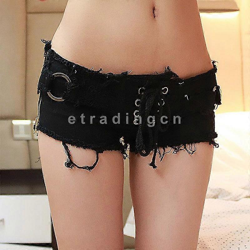 New Women Girl Cord Cross waist Mini Jeans Shorts Pants Trousers Low Waist Rings