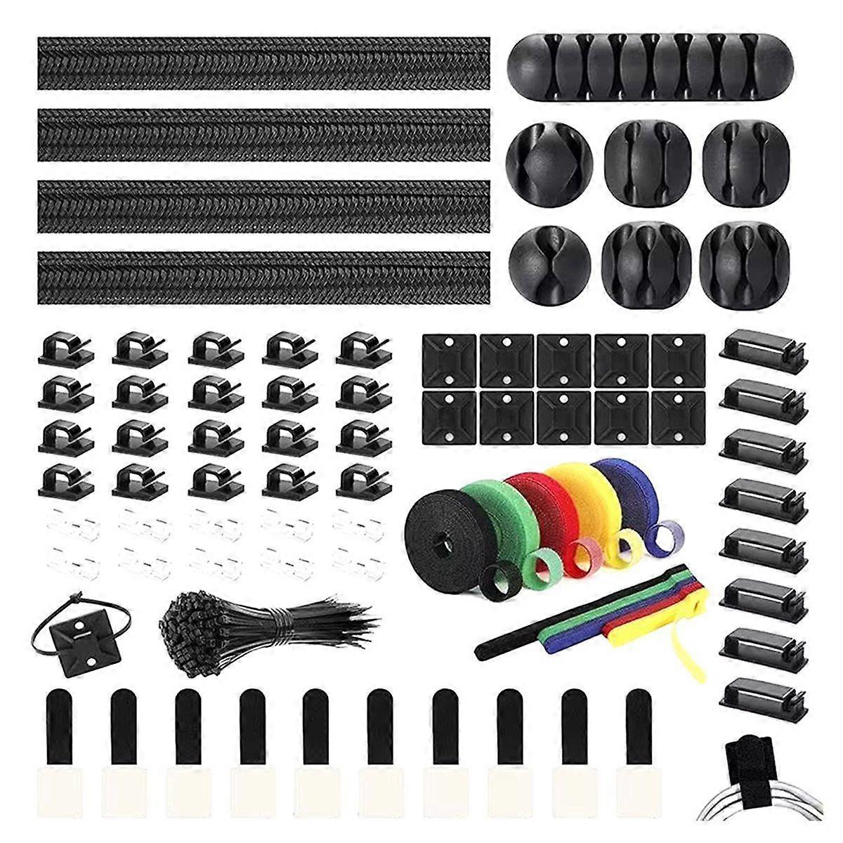 3kinds of Cable Clips:Wire Clips is made from eco-friendly Polyamide material, , extra strong. Works on all clean surfaces like desks, walls, baseboards, cabinets, wood, ceramics, etc.Two colors(black&transparent) meet your needs well. Premium Material: Made of highly and quality materials the components included in this kit are built to las, ensuring clutter free organization of your for years to come. The included cable holders boast strong self-adhesive sticky pads ensuring they remain affixed to your desired at all times. Easy to Install:Our wire is split and easy to load wires. Once loaded, our braided cable sleeve close on itself and perfect wire wrap. No drilling, nailing or taping required. This cord protector also can keeps cat from chewing cables. Color: As Shown Material: Plastic + Nylon Package Contents: 204 cable management accessories Only the above package content, other products are not included. Note: Light reflection and different displays may cause the color of the item in the picture a little different from the real thing. The measurement allowed error is +/- 1-3cm.