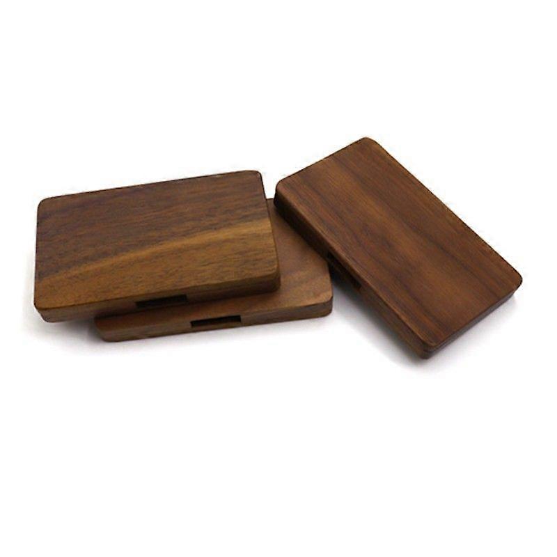 Portable Walnut Business Card Holder Magnetic Closure Geometric Design