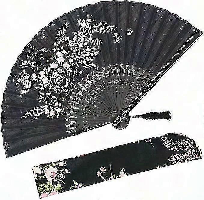 Japanese Bamboo Silk Folding Fan - Vintage Hand Fan For Women, Church, Dance Decoration