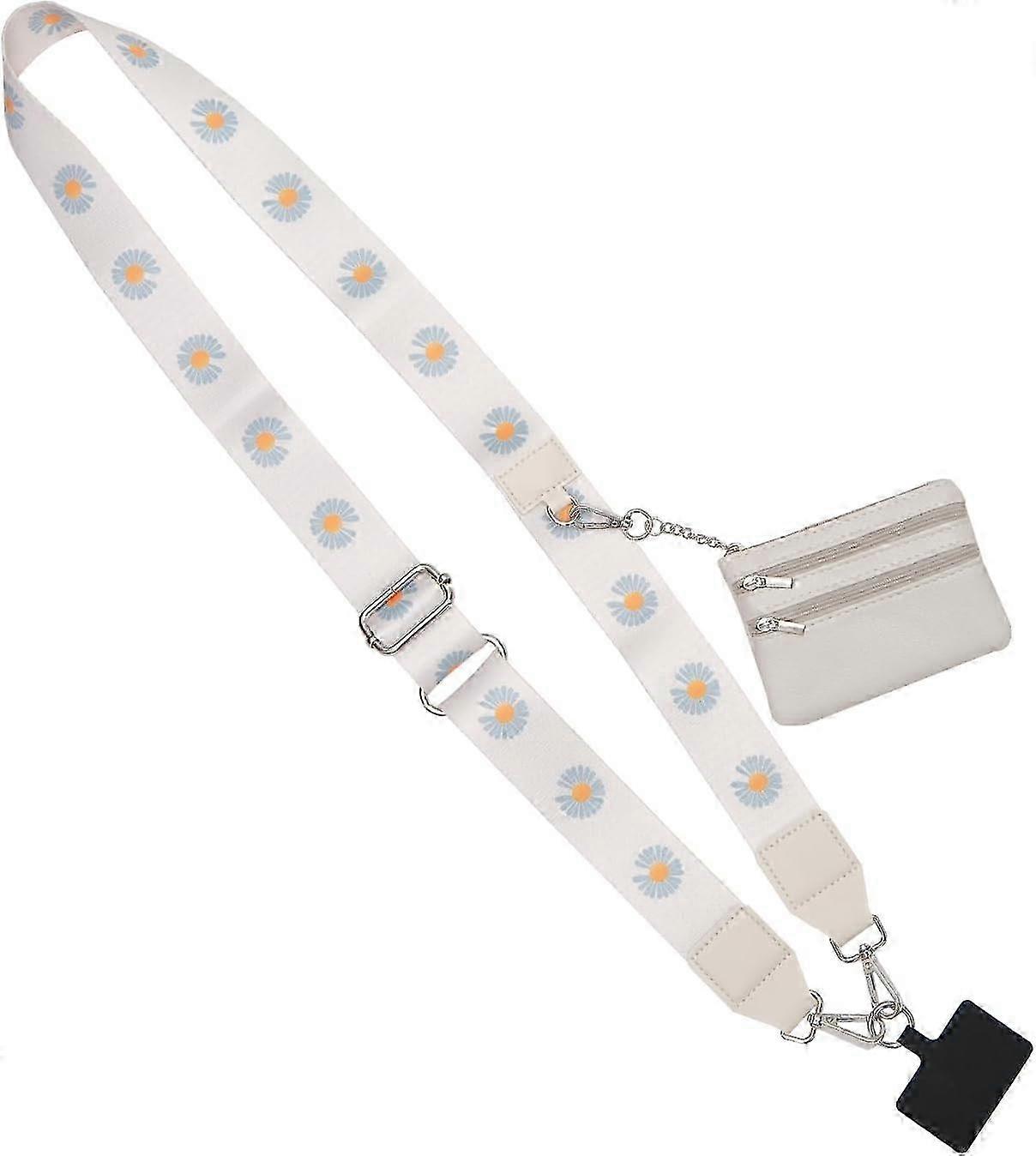 1 Pcs Clip And Go Strap For Phone With A Wallet Crossbody Lanyard For Women. String With Zipper Wallet Pouch, (white Flower )
