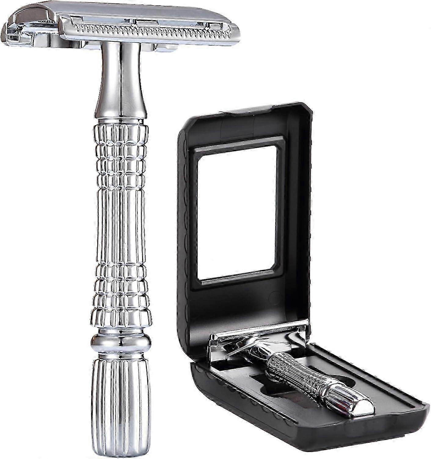 Double Edged Safety Razor Stainless Steel Reusable Manual Stainless Steel De Wet Shaving For Men Women With Mirror Travel Case Silver.