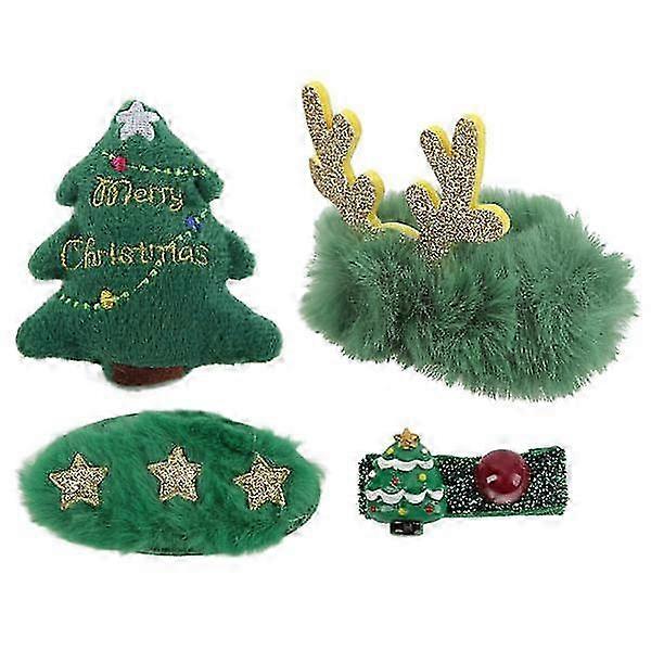 Christmas Clip Cute Green Exquisite Hairpin With Brooch Rubber Band Bb Clip For Christmas Hair Decoration Gift