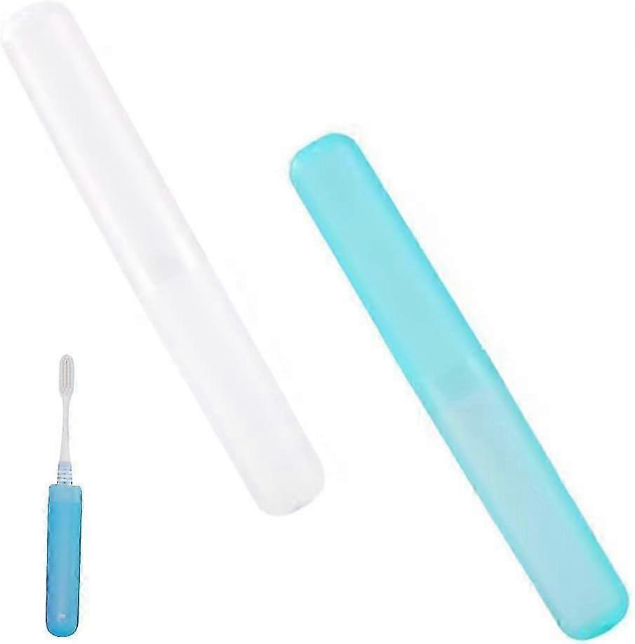 2pcs Toothbrush Case (white + Blue), Portable Toothbrush Case, Toothbrush Head Protective Cover, Suitable For Travel And Home Use