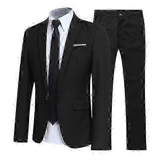 1 Set Men Jacket Pants Solid Color Turndown Collar Slim Fit Business Suit Set Plus Size Groom Blazer Trousers For Wedding Office A