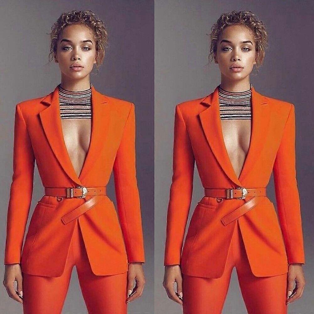 Orange Women Suits 2 Piece Office Ladies Blazer Formal Slim Fit Party Wear Coat