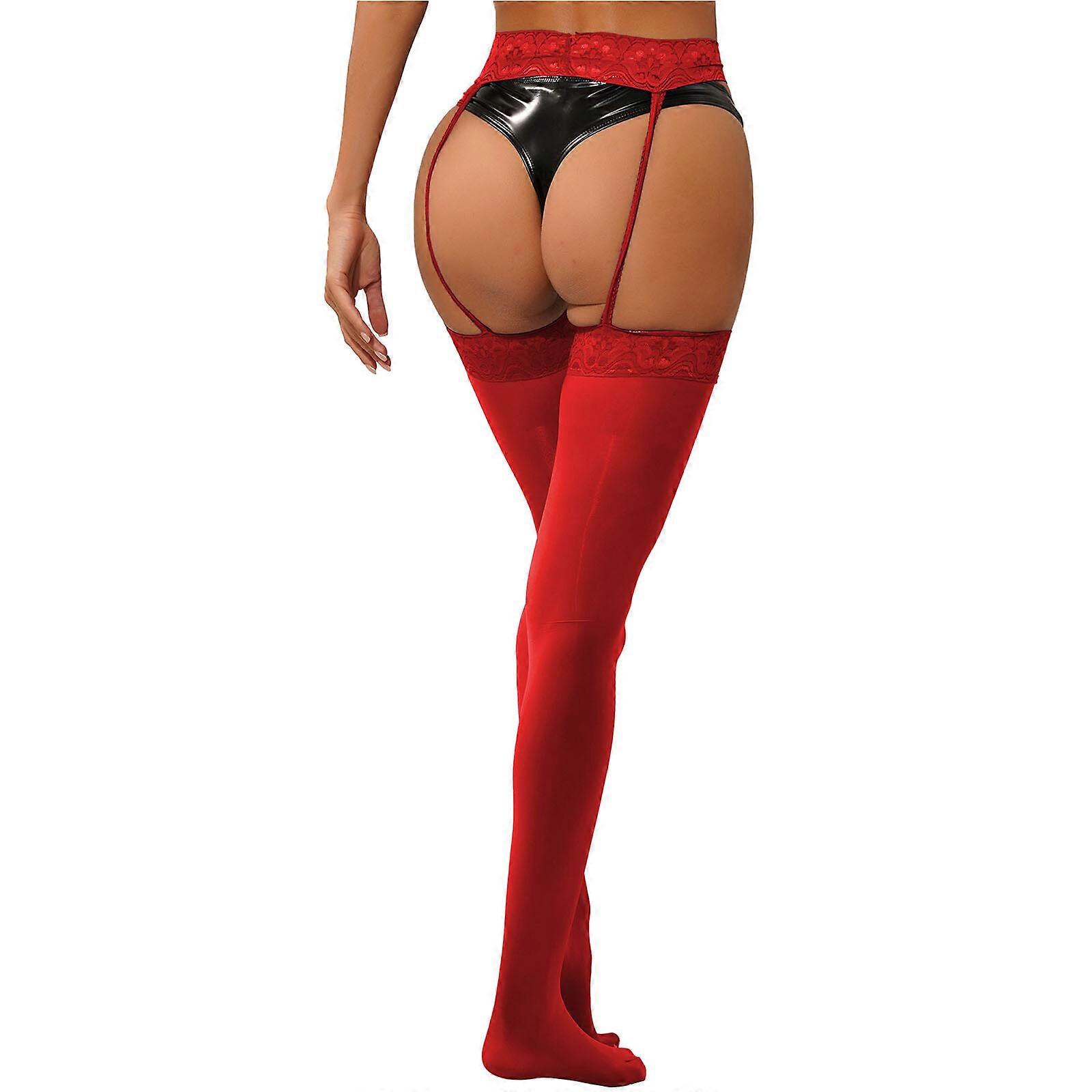 Women's Floral Lace Garter Belt Stockings Cutout Pantyhose See-Through Stocking