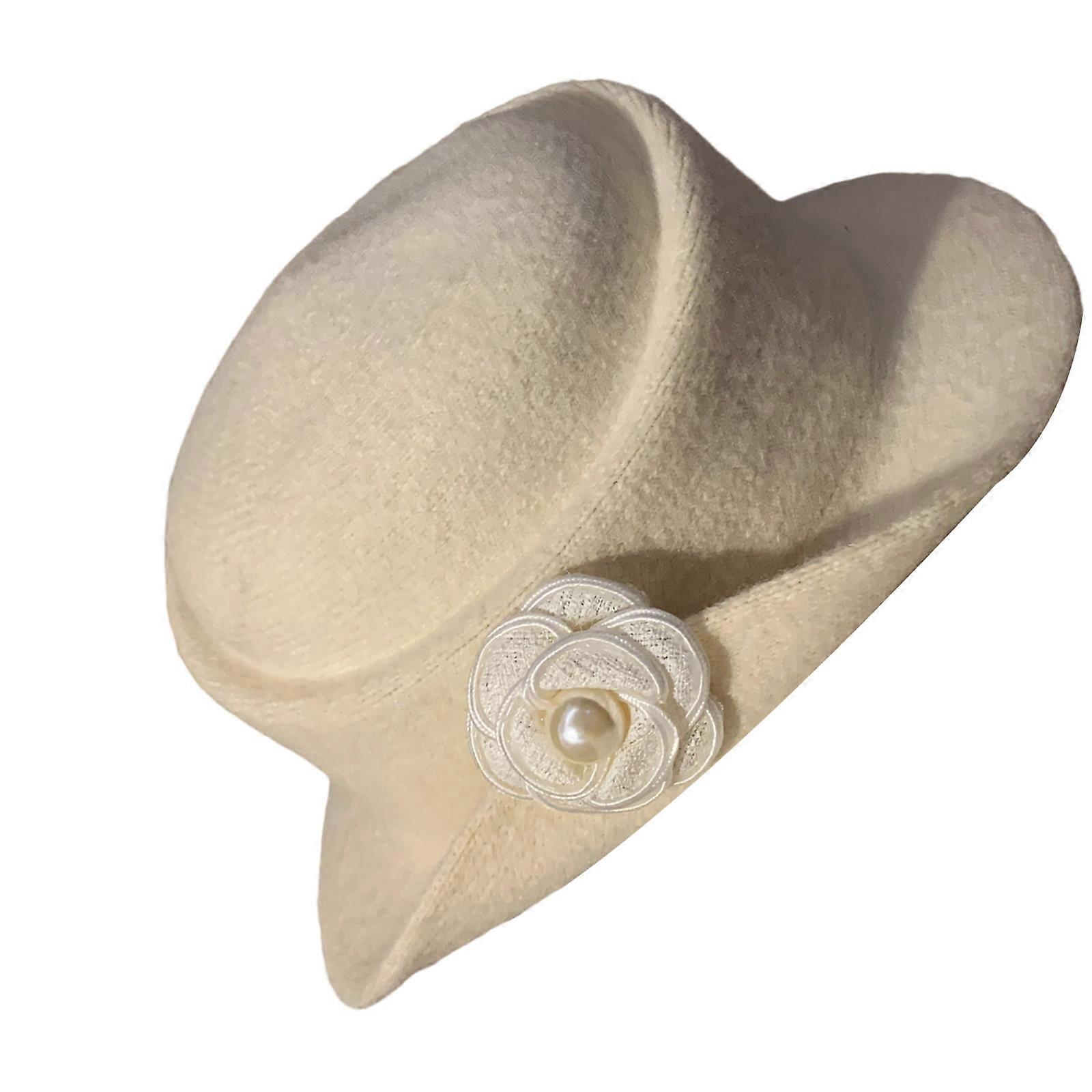 Multipurpose Fisherman Hat Export Grade Cotton Reinforced Stitching Camellia Flower Embellishment Practical Winter Caps Cream M