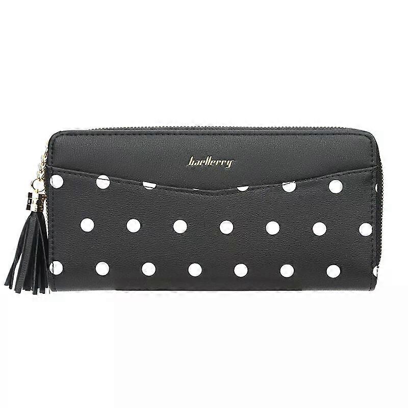 Dots Tassel Large Capacity Womens Leather Wallet Zip Around ID Card Holder Purse