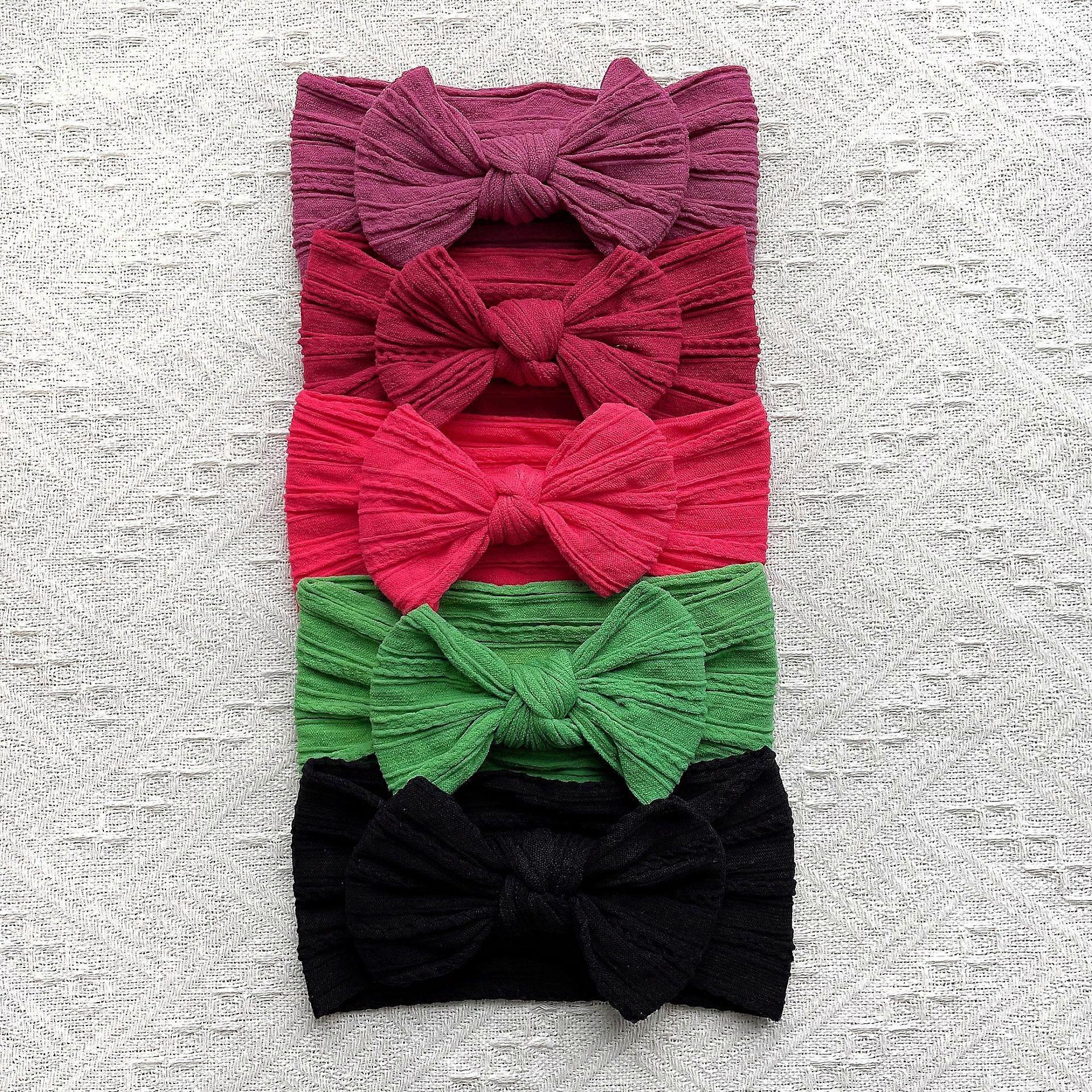 Ensemble de bandeaux pour nouveau-n��, 5 pi��ces/lot, bandeau tricot�� en Nylon extensible avec n?ud pour gar?ons et filles, Turban color��, acc