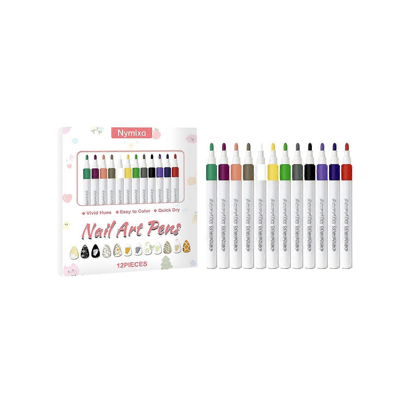 12 Colors Nail Art Pens Set, 3D Acrylic Paint Nail Polish Pens for Drawing &Dotting, Quick-Dry Nail Art Markers with Fine Tip, DIY Nail Art at Home &