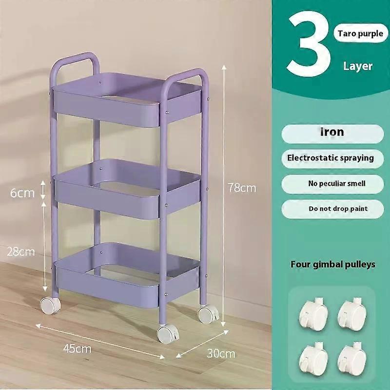 Three layer movable metal storage cart storage rack with high aesthetic value, suitable for home bedrooms, living rooms, snack