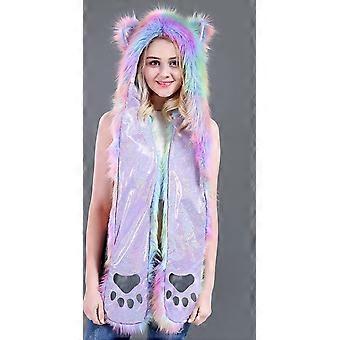 Fashion Rainbow Faux Fur Beanie Hat Cute Cat Paw Costume Rave Scarf Gloves Hat
