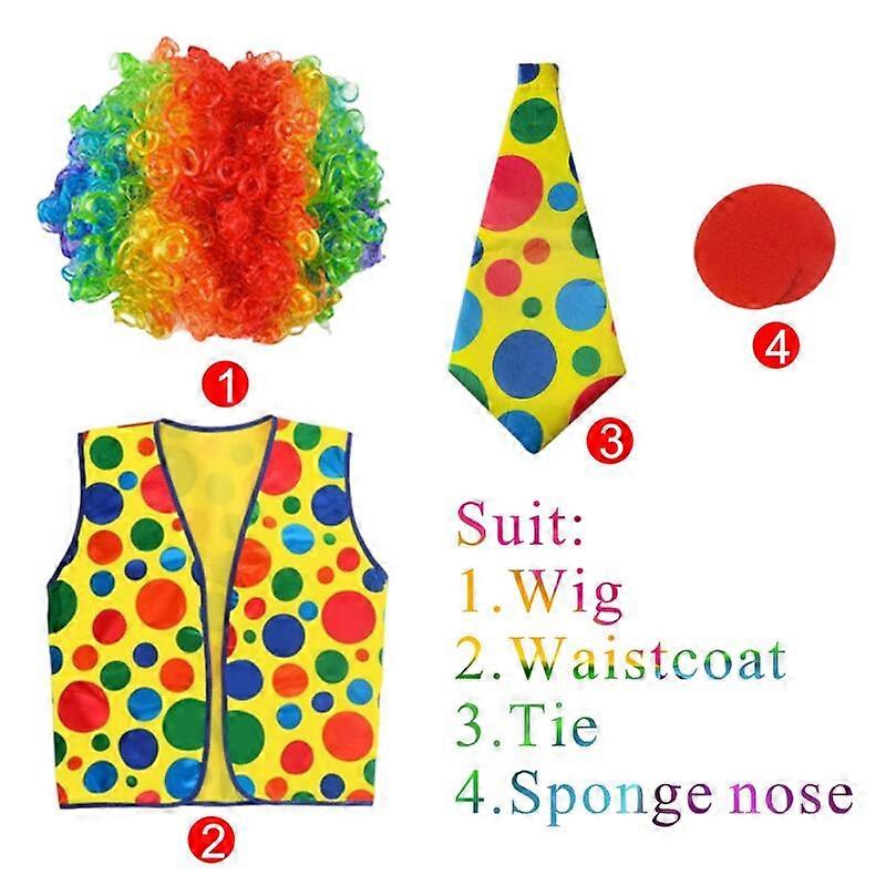 Perruque synth��tique Afro arc-en-ciel Clown d'halloween, nez rouge, gilet avec n?ud papillon, ensemble de costumes de Cosplay pour adultes,