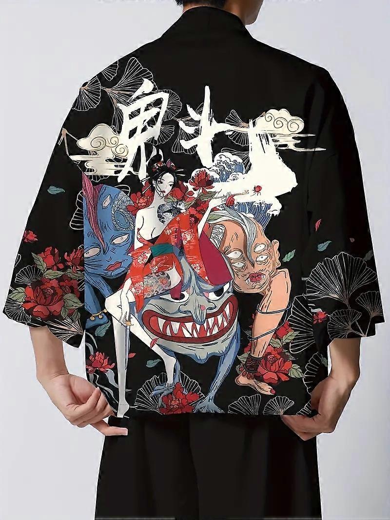 Cardigan Kimono traditionnel japonais unisexe, Vintage, motif Floral Geisha nuage, asiatique, ample, manches 3/4, ouvert sur le devant, Haor