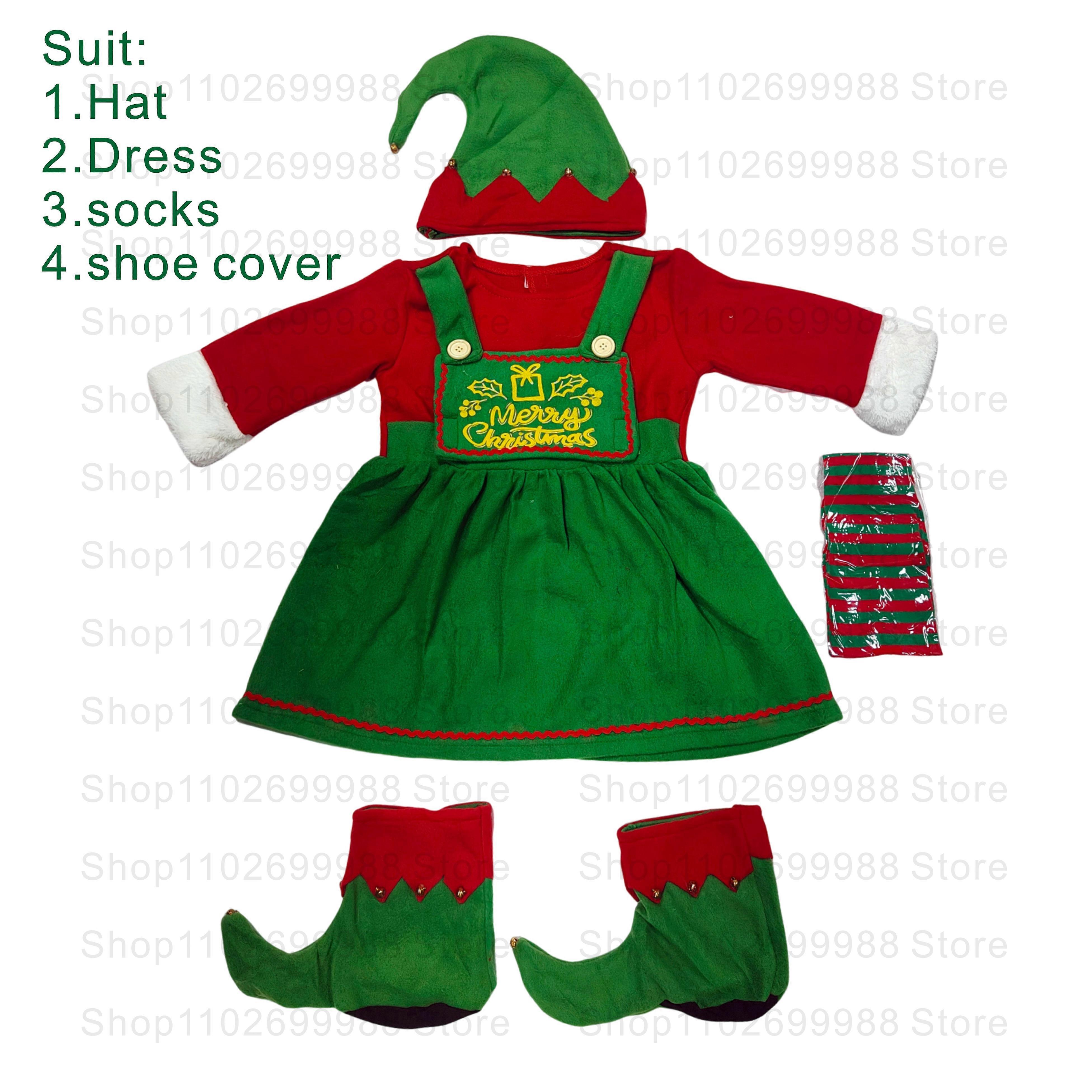 Ensemble de costumes de Cosplay elfe de no?l festif pour la famille, adultes, gar?ons et filles, tenue assortie rouge et verte, cadeaux de n
