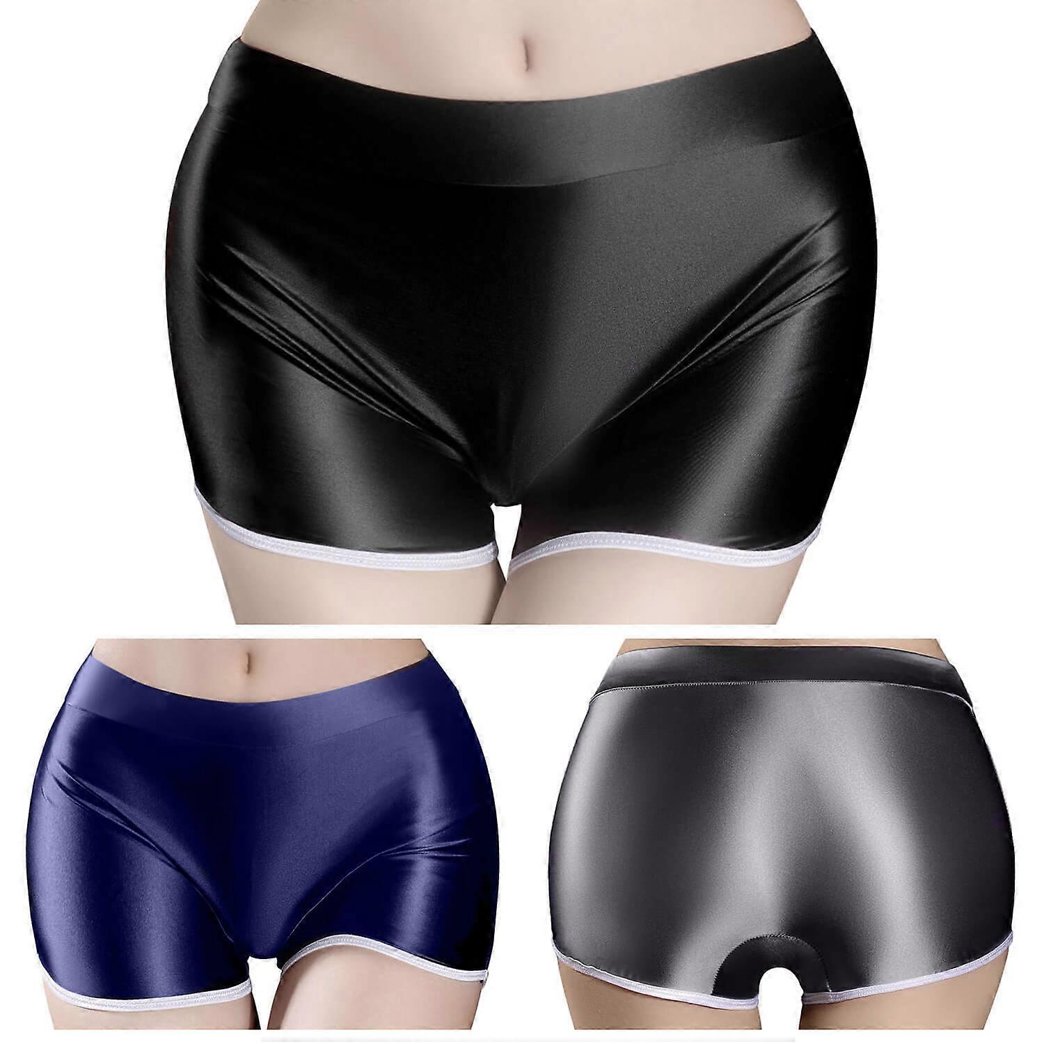 (3 Pack) Womens Stretch Satin Shorts Underwear Shiny Glossy Panties Boxer Shorts