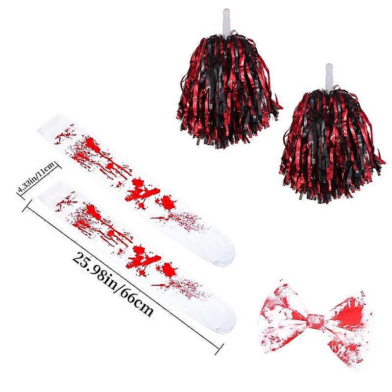 Bas de Zombie sanglant pour Halloween, pom-pom girl, Cosplay, chaussettes hautes, ��pingle �� cheveux, Pom Poms, blanc, rouge, ensemble d'acce
