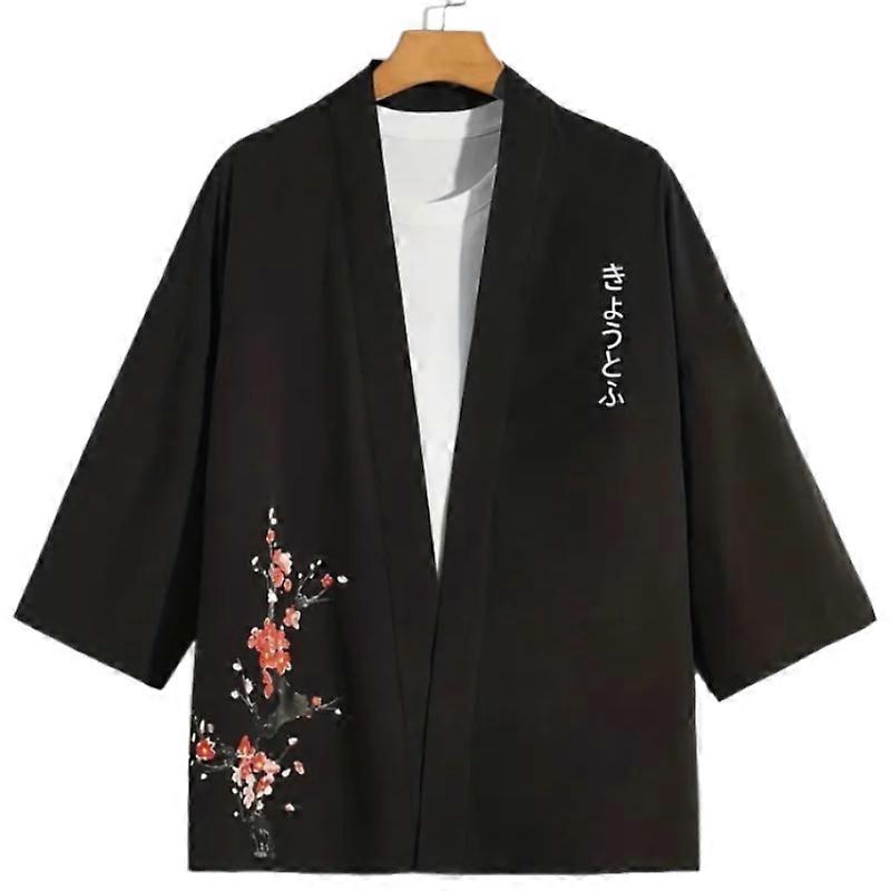 Cardigan Kimono noir japonais traditionnel d'��t��, imprim�� floral Unique, manches 3/4, couleur unie, ouvert sur le devant, Yukata Haori pour