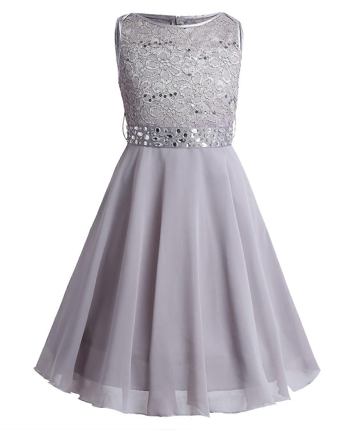 Girls Formal Party Dress Floral Lace Chiffon Proms Rhinestone Wedding Dresses